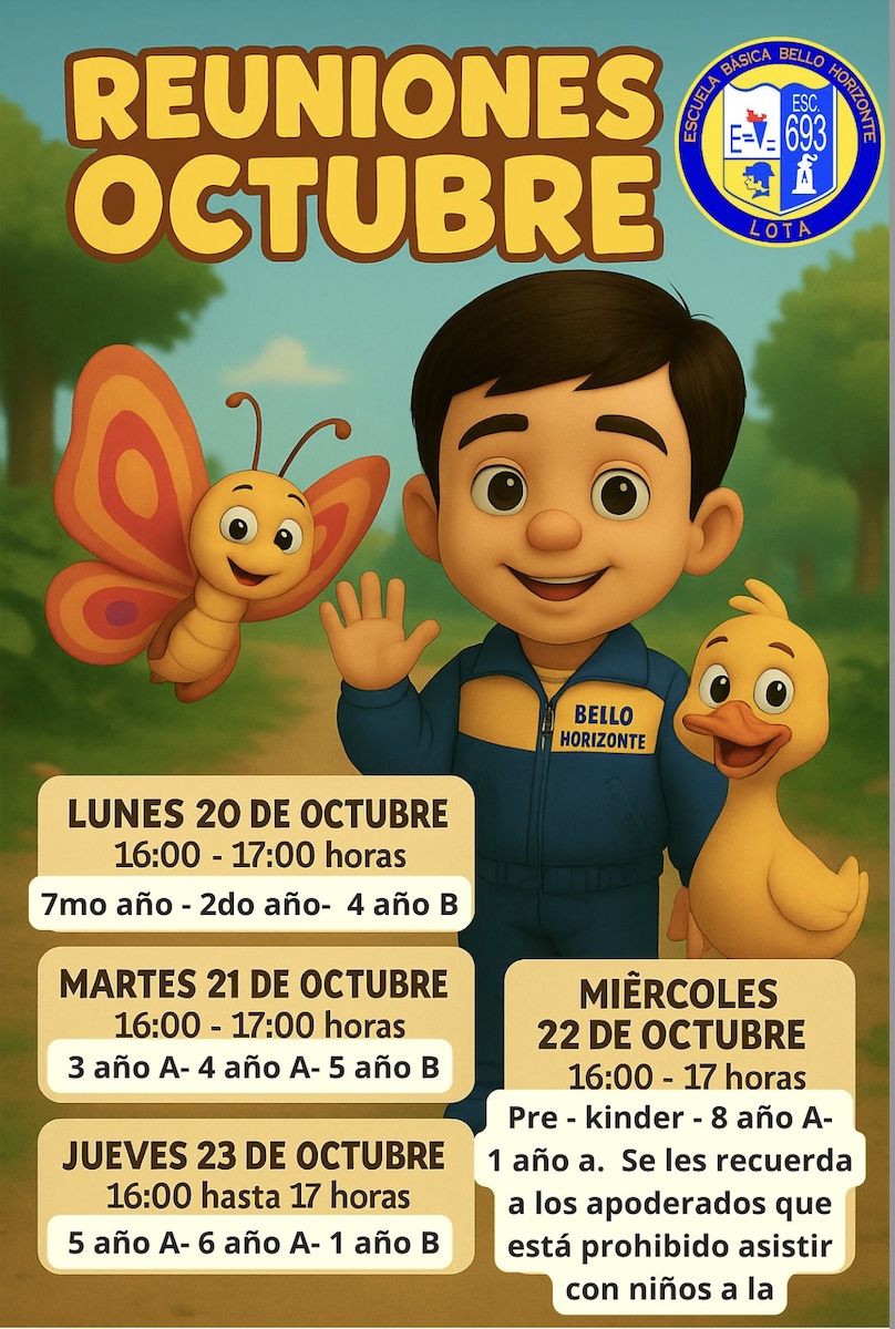 💙Se acerca el fin de semana y queremos adelantarte algo muy importante: 🗓️ las reuniones de apoderados se realizarán entre el 20 y el 24 de octubre.
