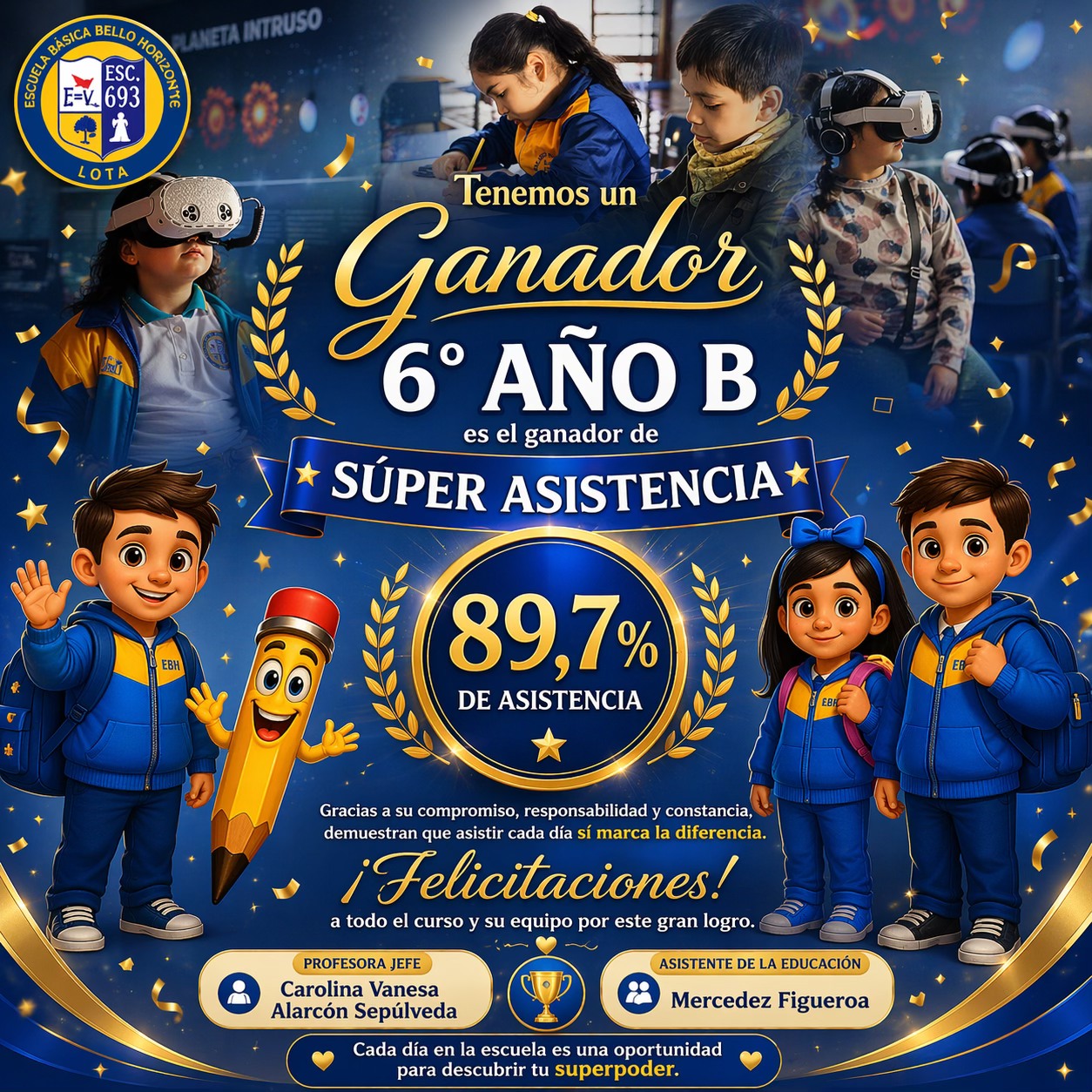 Felicitamos a cada estudiante de 6° B por este resultado ejemplar e invitamos a toda la comunidad a seguir su ejemplo. Sigamos trabajando juntos para que la asistencia sea siempre una prioridad y para que cada día de clases cuente.